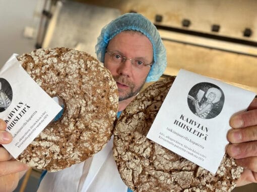 Alvari’s bakery has been baking traditional bread on a stone hearth since 1979. Armas Alvari returned to his hometown to revive local baking traditions and reopened Alvari’s Bakery in spring 2024, after it had been empty for a few years. The bakery’s specialties, all made by hand, include Karvia’s own ”kakko”, oat bread and sourdough rye bread – with only one machine used, for mixing dough. For Armas, baking is about preserving cultural heritage, and he hopes to keep Karvia’s rich bread traditions alive.