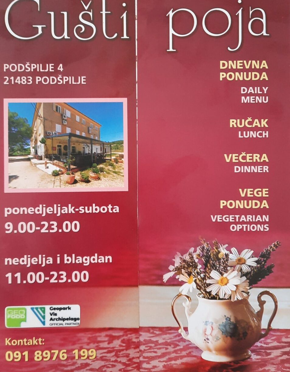 Gušti poja is a small tavern that has found its place in the heart of Vis Island, surrounded by the scent of pine trees. Decorated in a retro style, it exudes a casual atmosphere and is a real haven for visitors. The food is prepared for basic daily offerings in accordance with fresh local ingredients, […]