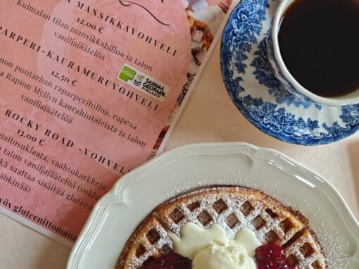 Welcome to the Waffle Café at Tiittala Manor to taste a piece of the unique nature and cultural heritage of Sulkava and Lake Saimaa. With us, every bite tells a story! At the heart of our Tiittala Manor’s Waffle Café’s waffles or dishes are the ingredients, which come from local producers. Wheat flour from Rapio Mill’s stone mill and free-range eggs from Muurahaismäki Farm.