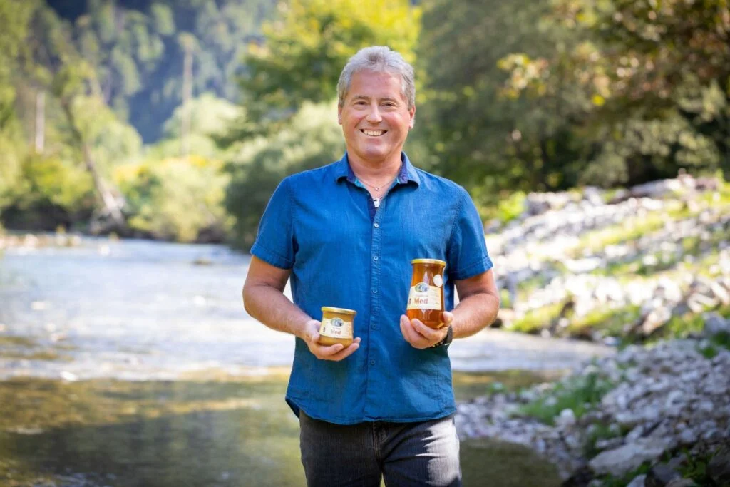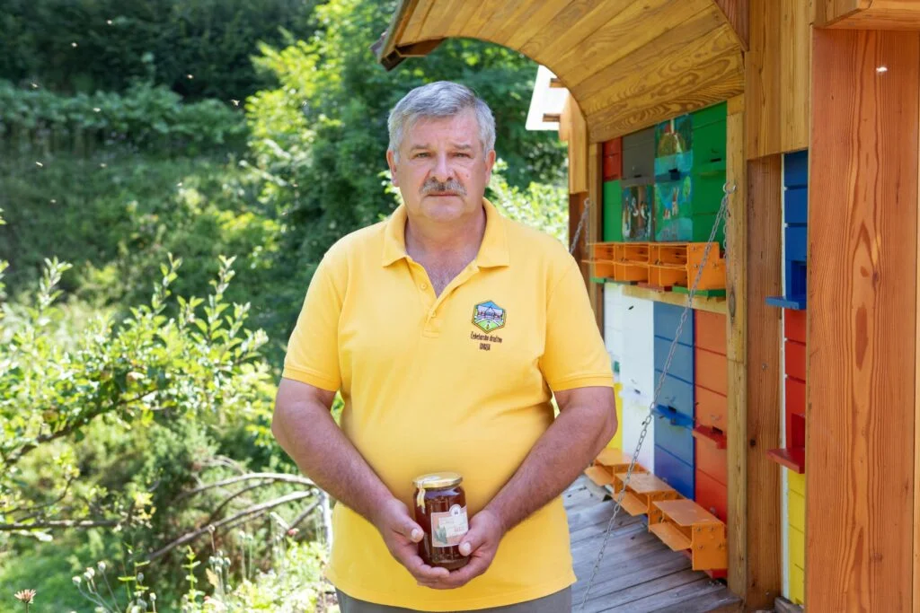 Darko Ipavec dived in the world of beekeeping in 2005 when he bought his first bee colony after studying bees and beekeeping for a year. Today, he is a happy beekeeper with bees collecting flower, forest, and fir honey in the Upper Idrijca Landscape Park. Darko is also a proud owner of the Medvedu prijazno (Bear-friendly) certificate.