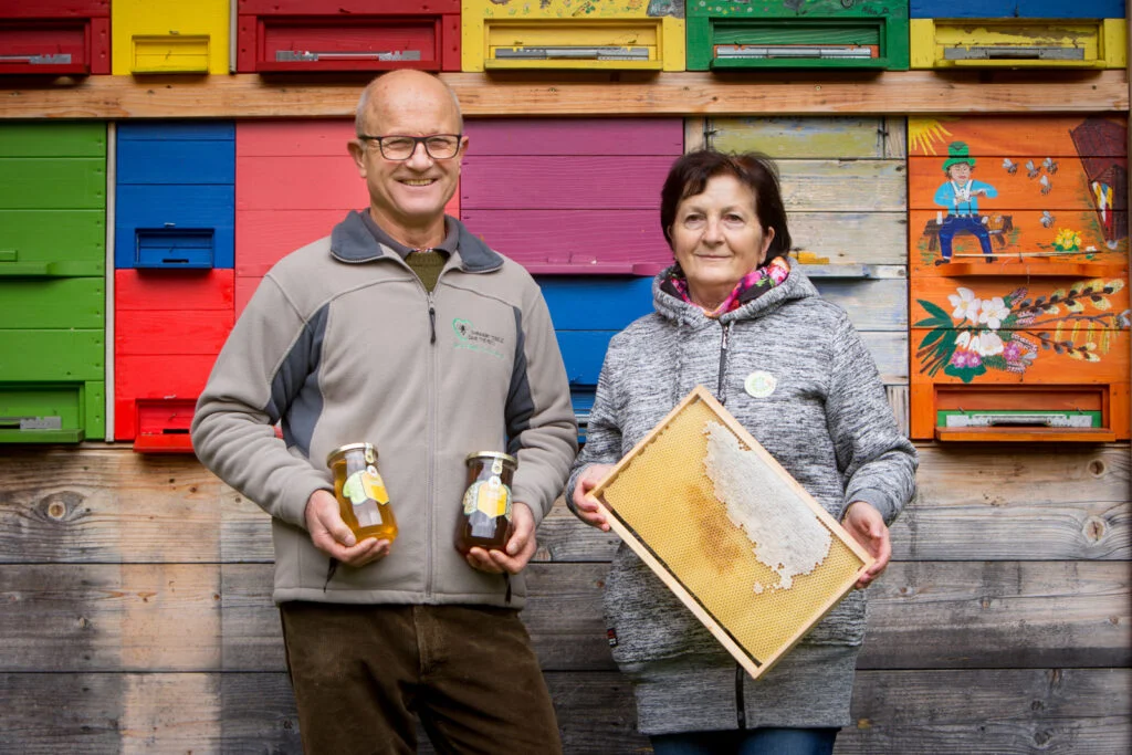Silvij and Blanka claim that bees simply win your heart. If they started their beekeeping business due to circumstance, they cannot imagine a life without bees anymore. They are raising 28 bee colonies that collect various honeys: flower, acacia, chestnut, linden, and forest. Silvij and Blanka received multiple recognitions for their honey and are active in the Idrija Beekeeping Association.